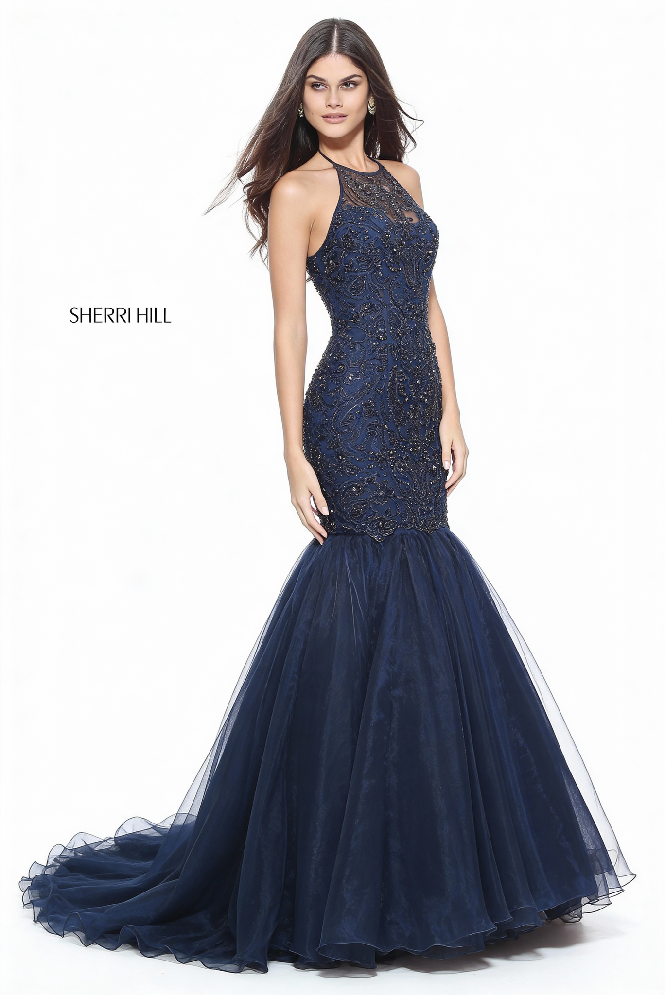 Платье-русалка с с Американским вырезом декольте, расшитое камнямм, и юбкой из органзы.
