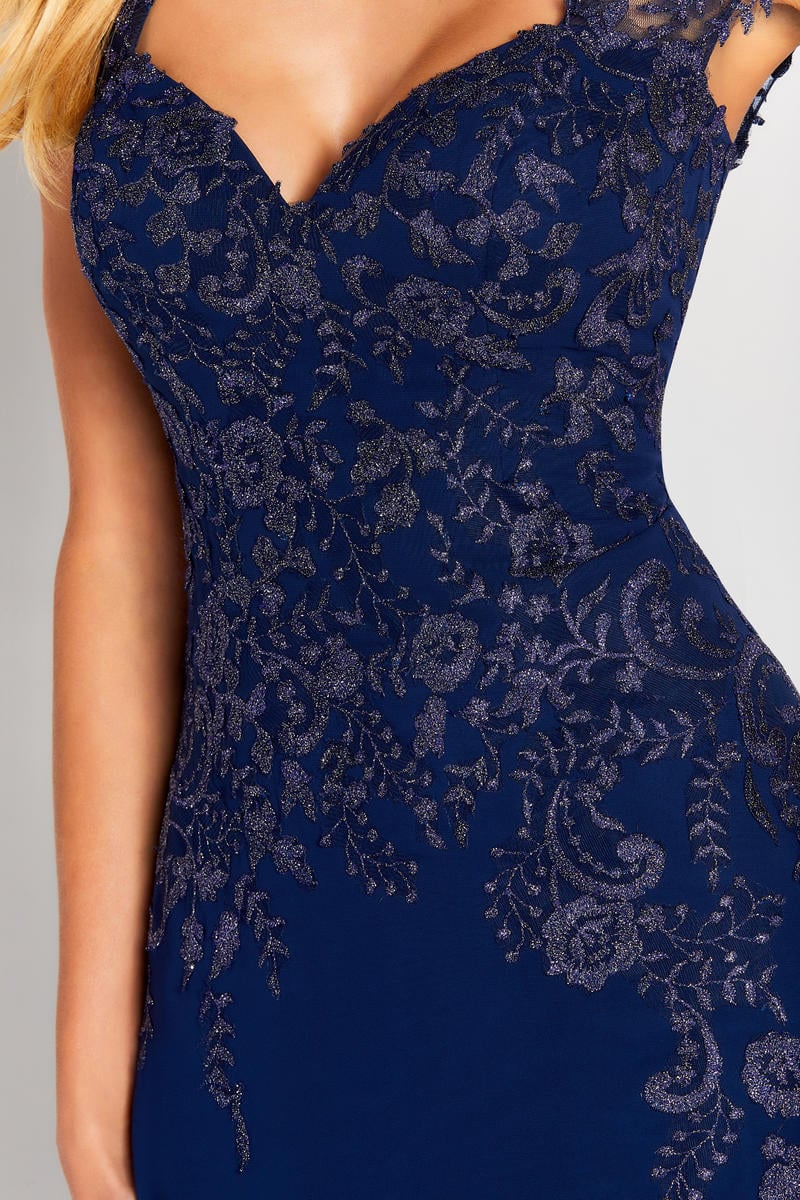 Это невероятно женственное шифоновое платье облегающего кроя с расклешенное к низу, с вышитыми рукавами-крылышками, создающими вырез в стиле королевы Анны, вышивкой, подчеркивающей асимметрично заниженную линию талии, вырезом-замочной скважиной на спине и шлейфом. В комплект входит шаль в тон.
