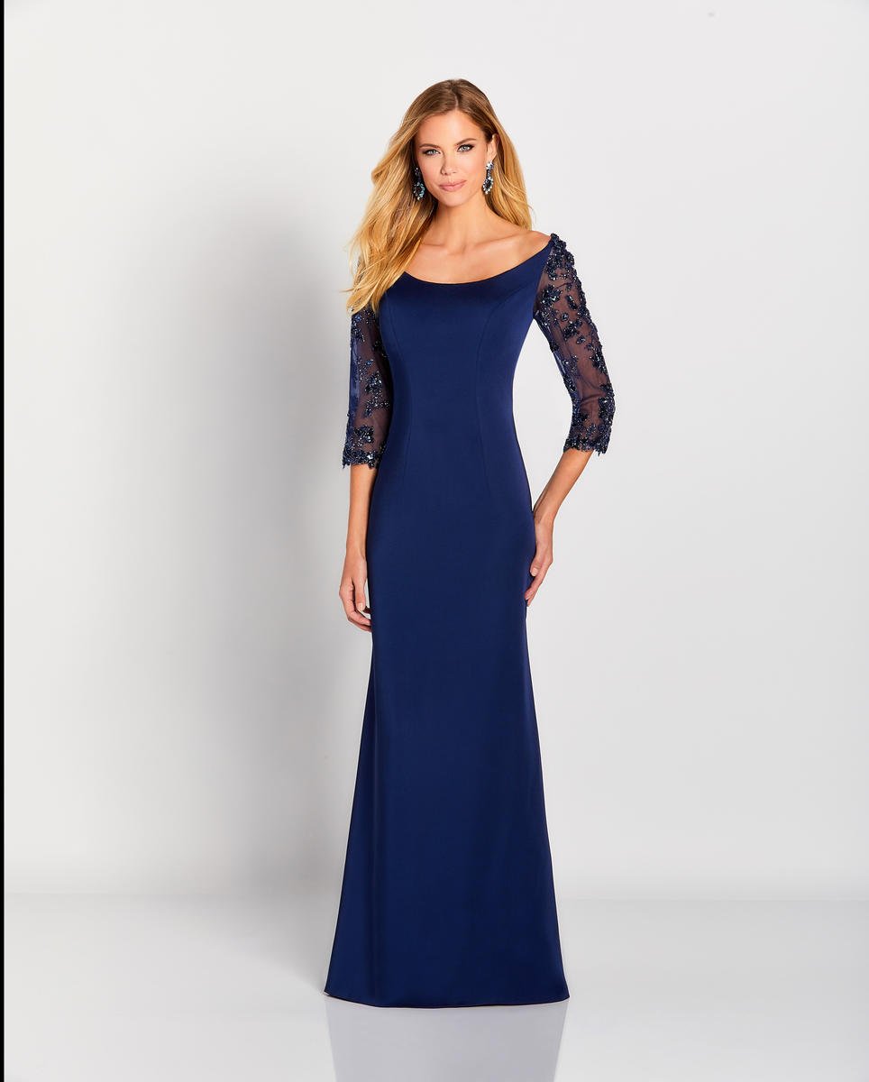 Это облегающее платье из крепа-стрейч, подходящее для красной дорожки, имеет рукава три четверти, расшитые бисером, широкий вырез лодочкой до кРая плеча, стройнящий силуэт «принцесса» и скользящий шлейф.