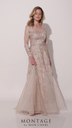 Платье, в котором Вы гарантировано будете в центре внимания. Это платье трапециевидной формы из тюля с металлизированной вышивкой в тон, иллюзорным вырезом «лодочка», длинными рукавами и поясом из бисера на талии.